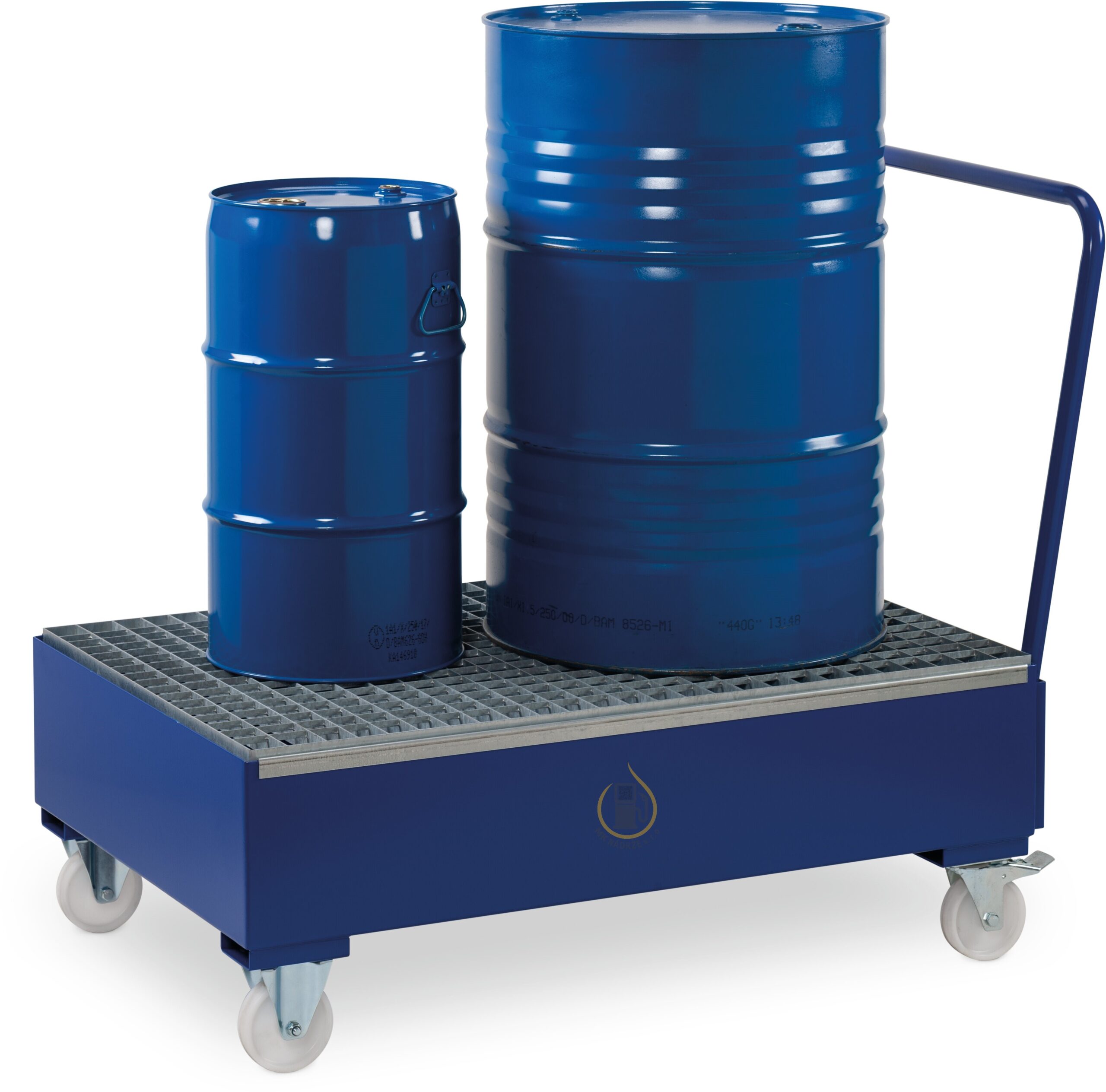 Mobilné záchytné vane vyrobené z lakovanej, alebo pozinkovanej ocele s pozinkovaným roštom. Vozík so záchytnou vaňou s objemom až 205 litrov je opatrený dvomi pevnými, dvomi manipulačnými kolieskami a rukoväťou, vďaka čomu je preprava sudov a kanistrov jednoduchá a bezpečná.