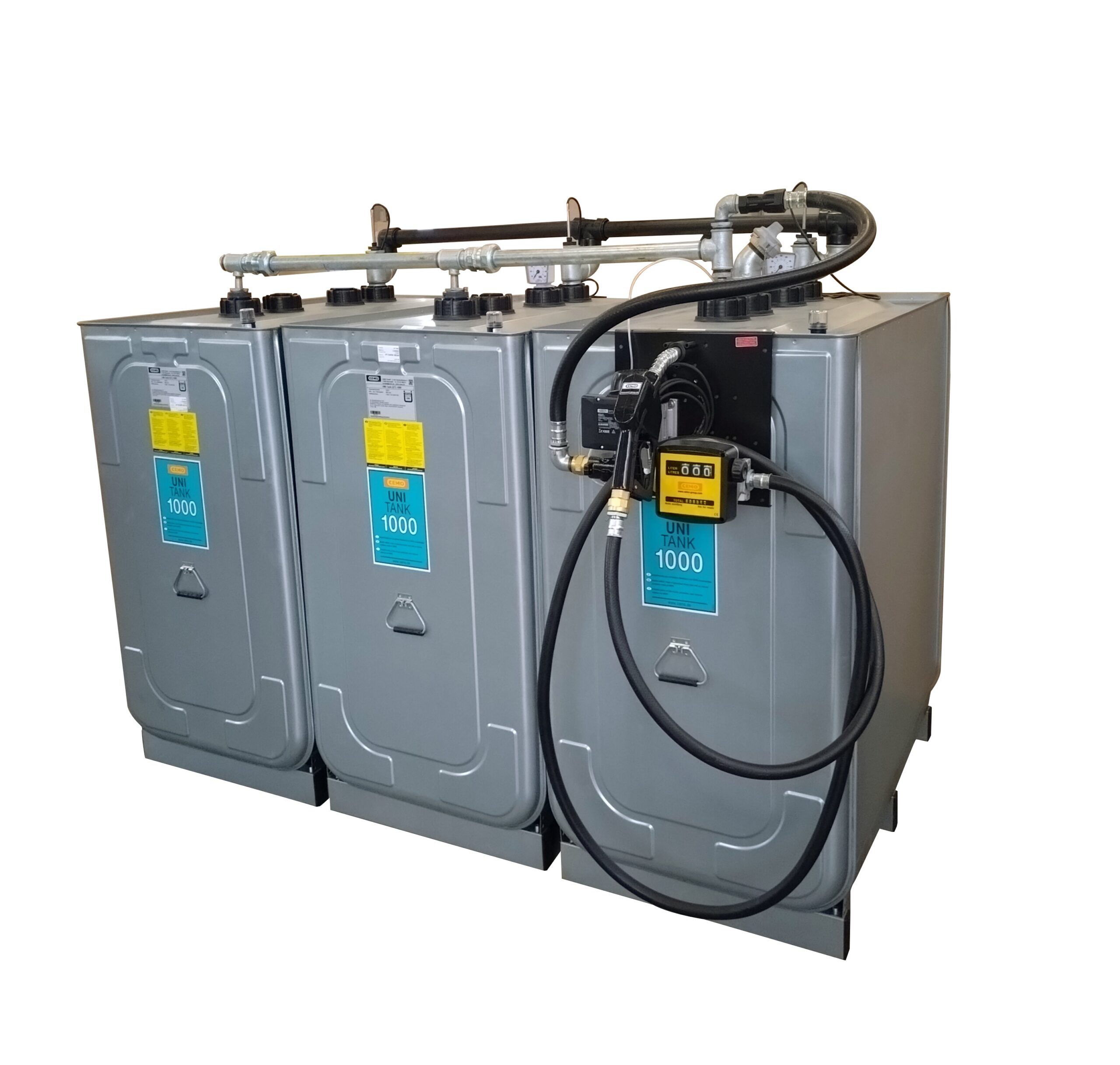 Ponúka unikátne riešenie dvojplášťových nádrži UNI spojilo dva druhy materiálov. Vnútorná nádrž je vyrobená z HDPE materiálu a vonkajšia nádrž vyrobená z pozinkovaného plechu. Nádrže sú vhodné pre skladovanie nafty a olejov v interiéry aj bez záchytnej vane. Nádrže UNI tank systém sú vo veľkostiach 1000 lit. s možnosťou vzájomného prepojenia až troch nádrži s maximálnym objemom 3000 litrov. Vďaka tomuto prepojeniu je možné časom rozšíriť skladovací objem s jednotným prepojení vyprázdňovania nádrži.