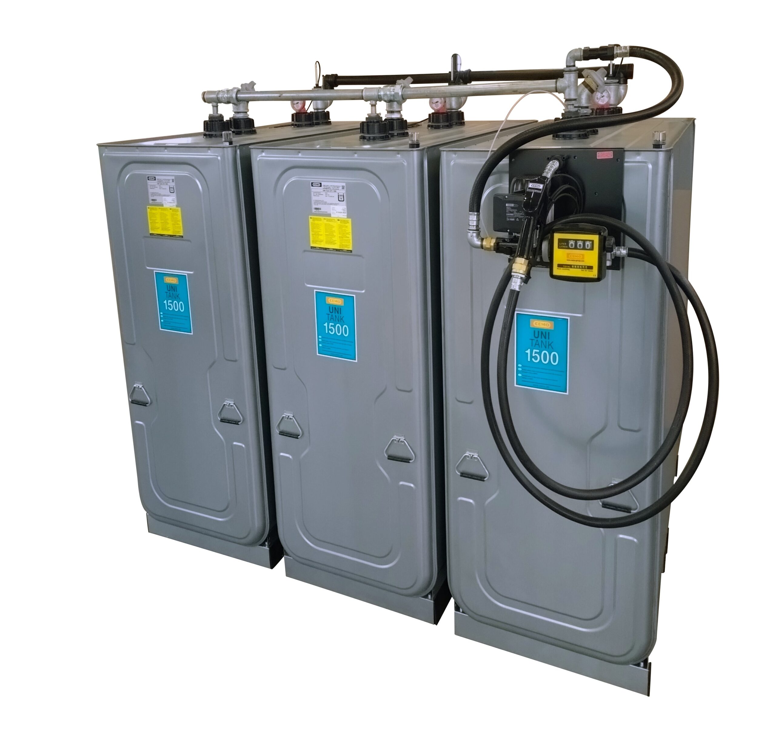 Ponúka unikátne riešenie dvojplášťových nádrži UNI spojilo dva druhy materiálov. Vnútorná nádrž je vyrobená z HDPE materiálu a vonkajšia nádrž vyrobená z pozinkovaného plechu. Nádrže sú vhodné pre skladovanie nafty a olejov v interiéry aj bez záchytnej vane. Nádrže UNI tank systém sú vo veľkostiach 1500 lit. s možnosťou vzájomného prepojenia až troch nádrži s maximálnym objemom 4500 litrov. Vďaka tomuto prepojeniu je možné časom rozšíriť skladovací objem s jednotným prepojení vyprázdňovania nádrži.