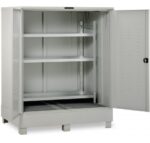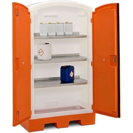 Sklad nebezpečných látok slúži k bezpečnému uskladnenie horľavých a nebezpečných látok ako sú kyseliny a luhy. Sklad je vyrobený z oceľového materiálu s lakovanou povrchovou úpravou (RAL7035) v dvoch rôznych veľkostiach s integrovanou záchytnou vaňou, uzamykateľnými dverami a strešným odvetrávaním. Pre uloženie menších sudov a kanistrov ponúka možnosť dokúpenia políc.