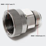 Otočný kĺb výdajnej pištole s vnútorným závitom na pripojenie hadice DN 25 (33,7 mm -1 „) a DN 19 ( 26,9 mm – 3/4“) na pripojenie pištole. Oceľový otočný kĺb zabraňuje nežiadúcemu pretáčaniu hadice pri bežnom použití čo uľahčuje výdaj PHM a zároveň značne zvyšuje životnosti hadice.