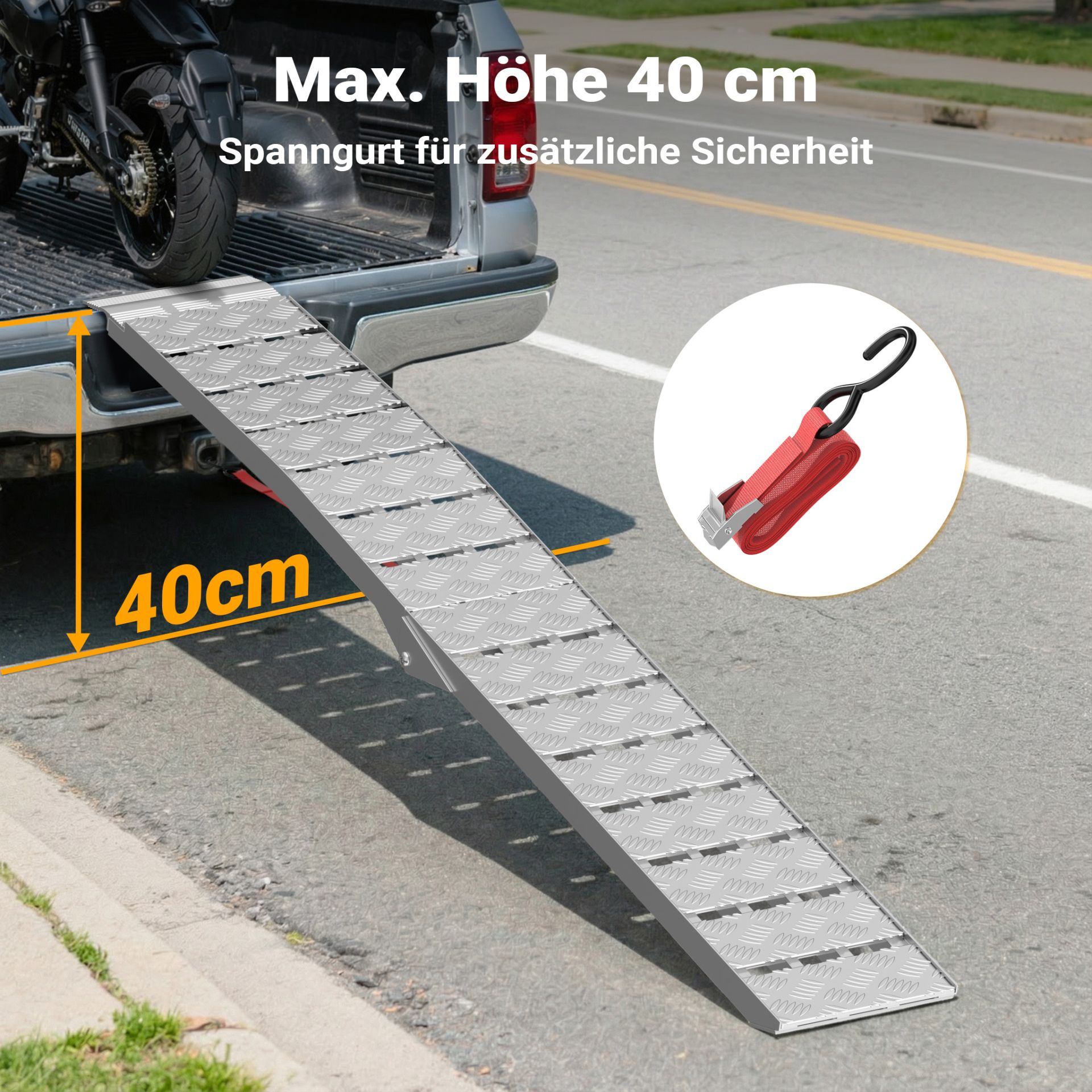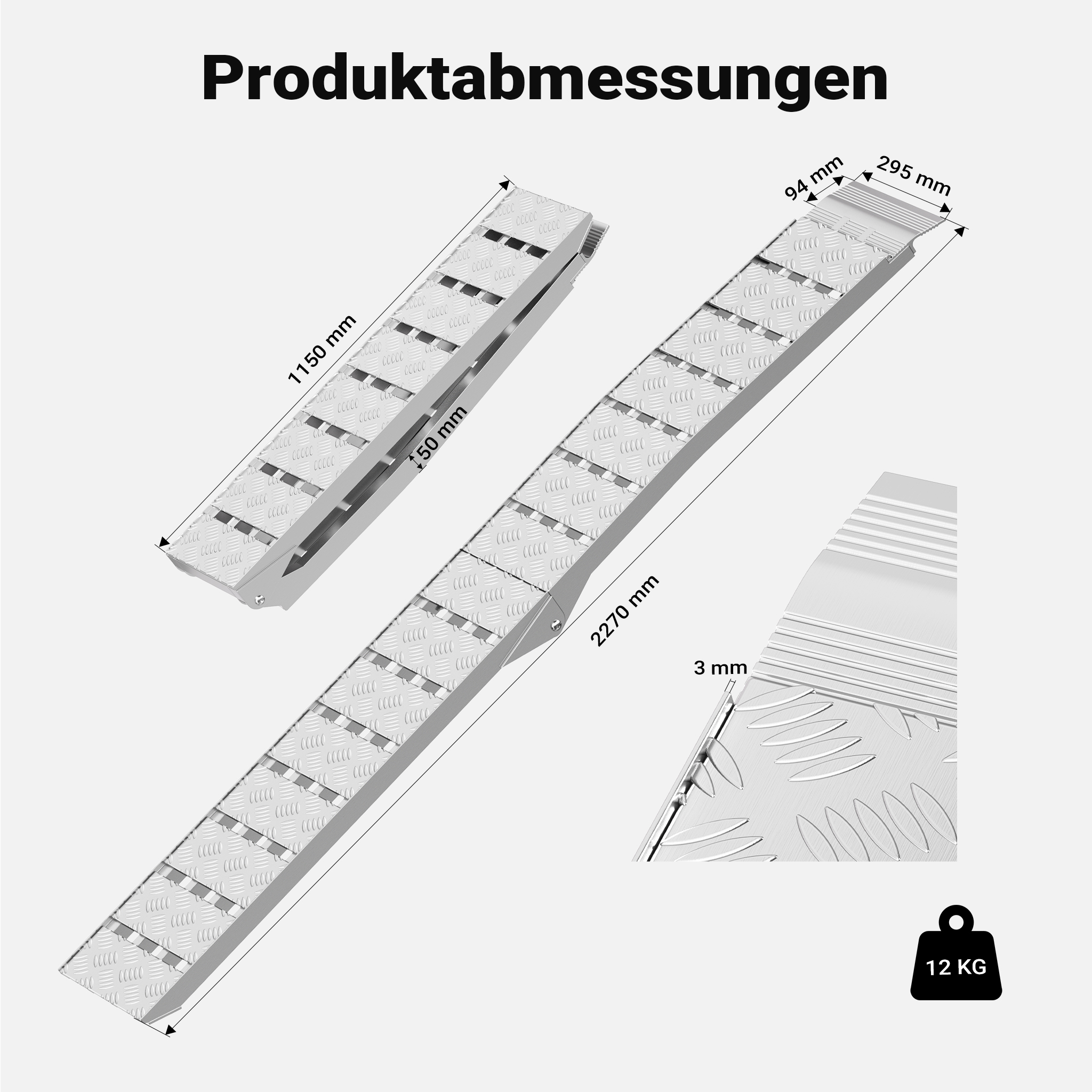 Sklápacia nakladacia rampa určená k bezpečnému naloženiu, alebo vyloženiu štvorkoliek poľnohospodárskych strojov, motoriek, a iných. Rampa je vyrobená z hliníka s protišmykovým povrchom s nosnosťou jednej rampy 680 kg a celkovou nosnosťou páru až 1360 kg. Rampa je dostupná ako pár, ale aj ako samostatná jednostopová rampa.
