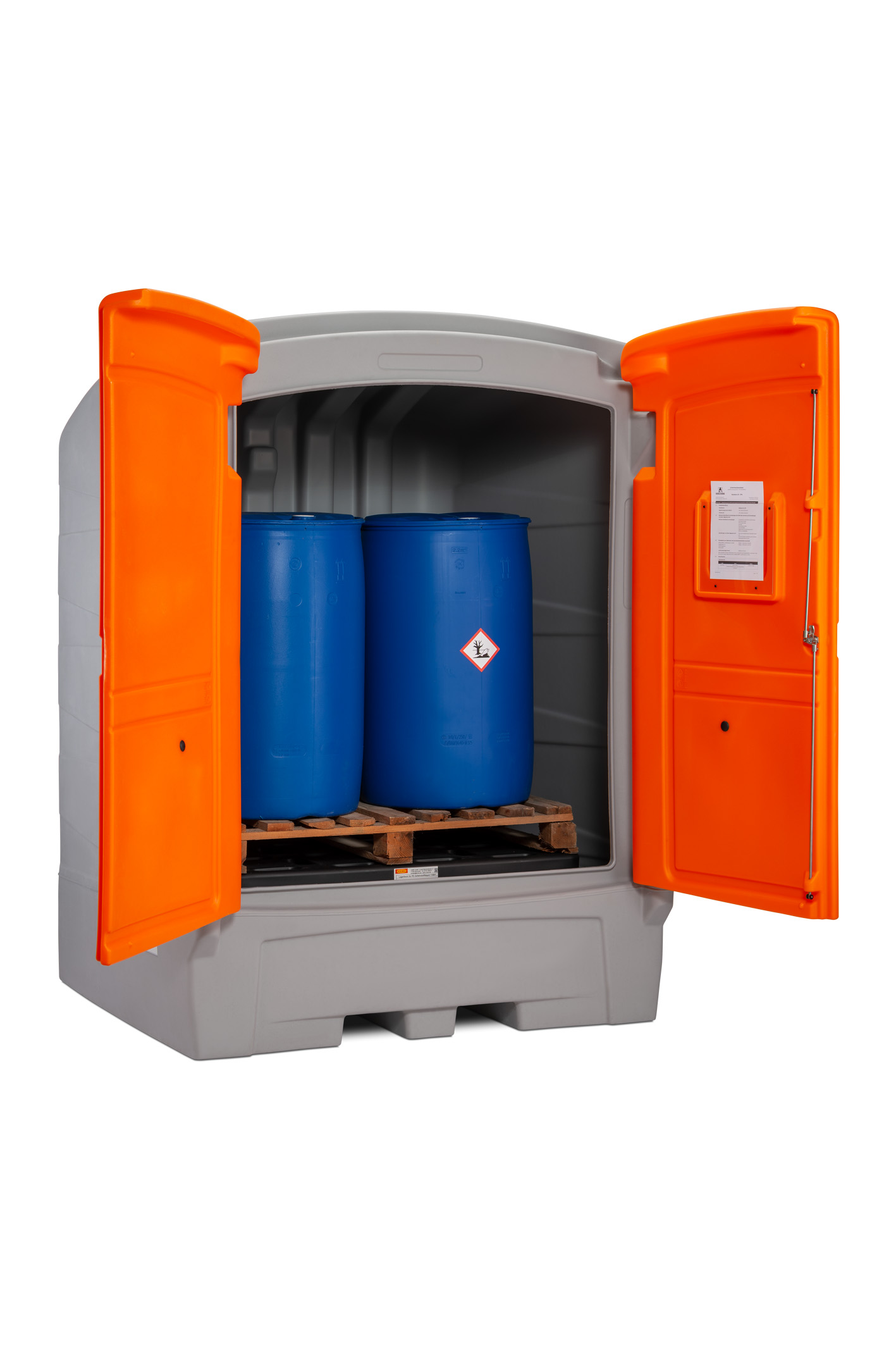Sklad je určený na skladovanie nebezpečných kvapalín pre 1000 litrové IBC nádrže alebo 4 x 200 litrové sudy s nosnosťou až do 1100 kg, so stavebným schválením Z-40.22-591 pre vonkajšie alebo vnútorné použitie vyrobený z vysoko kvalitného polyetylénu (PE) s vysokou chemickou odolnosťou. Vhodné pre palety 120 x 120. Palety a IBC nádrž môžu byť umiestnené priamo v sklade bez roštu, ale rošty môžu byť použité pri skladovaní nebezpečných látok. Možnosť pripevnenia vnútorného osvetlenia.