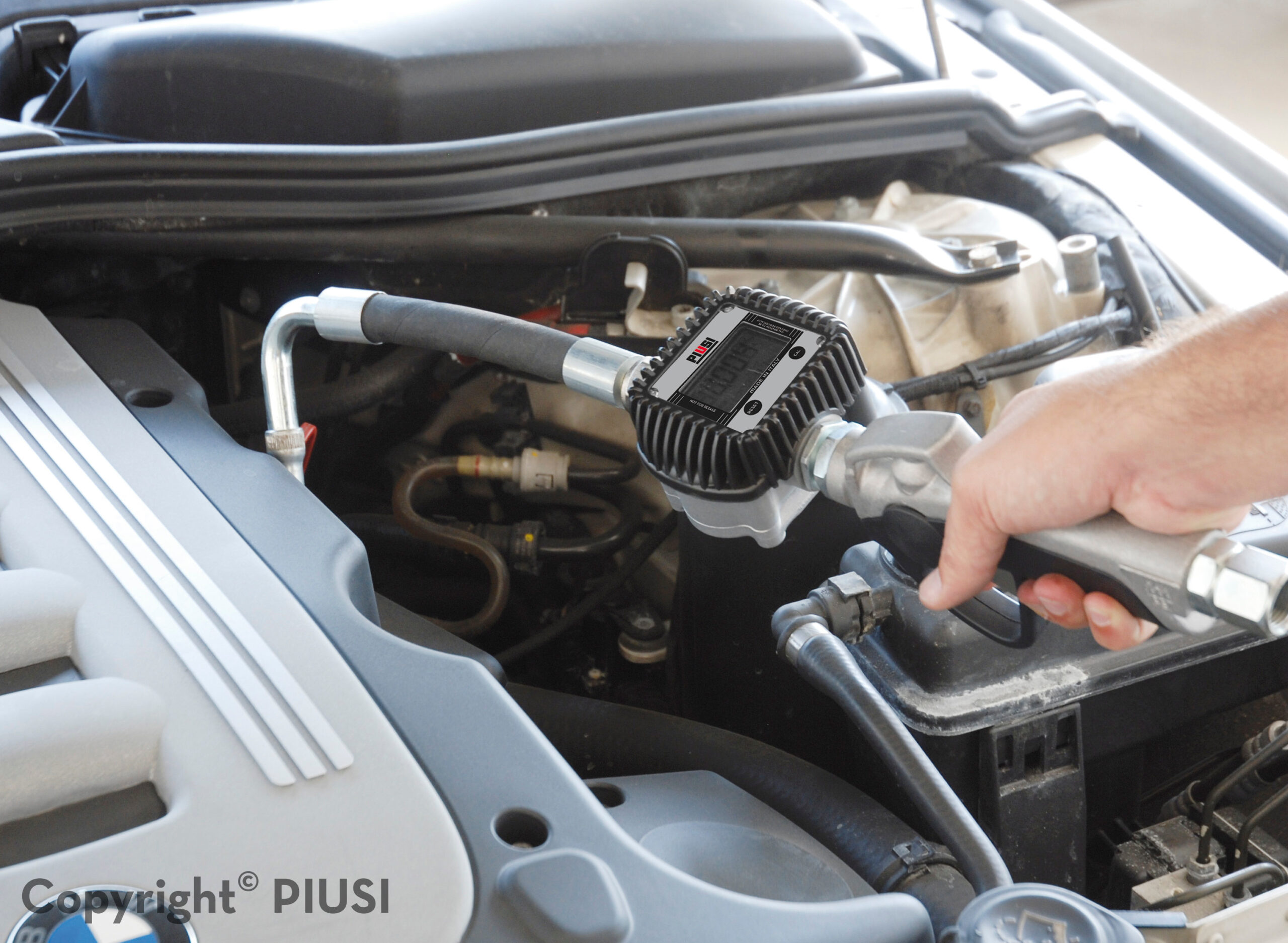Výdajná pištoľ na olej s flexibilným výlevkou, otočným kĺbom ½ʺ a koncovkou proti odkvapkávaniu Anti-drip. Pištoľ je prepojená s digitálnym prietokomerom K400, ktorý umožňuje kontrolu vydaného množstva. Prietokomer je vybavený tlačidlami reset a kalibračným tlačidlo.