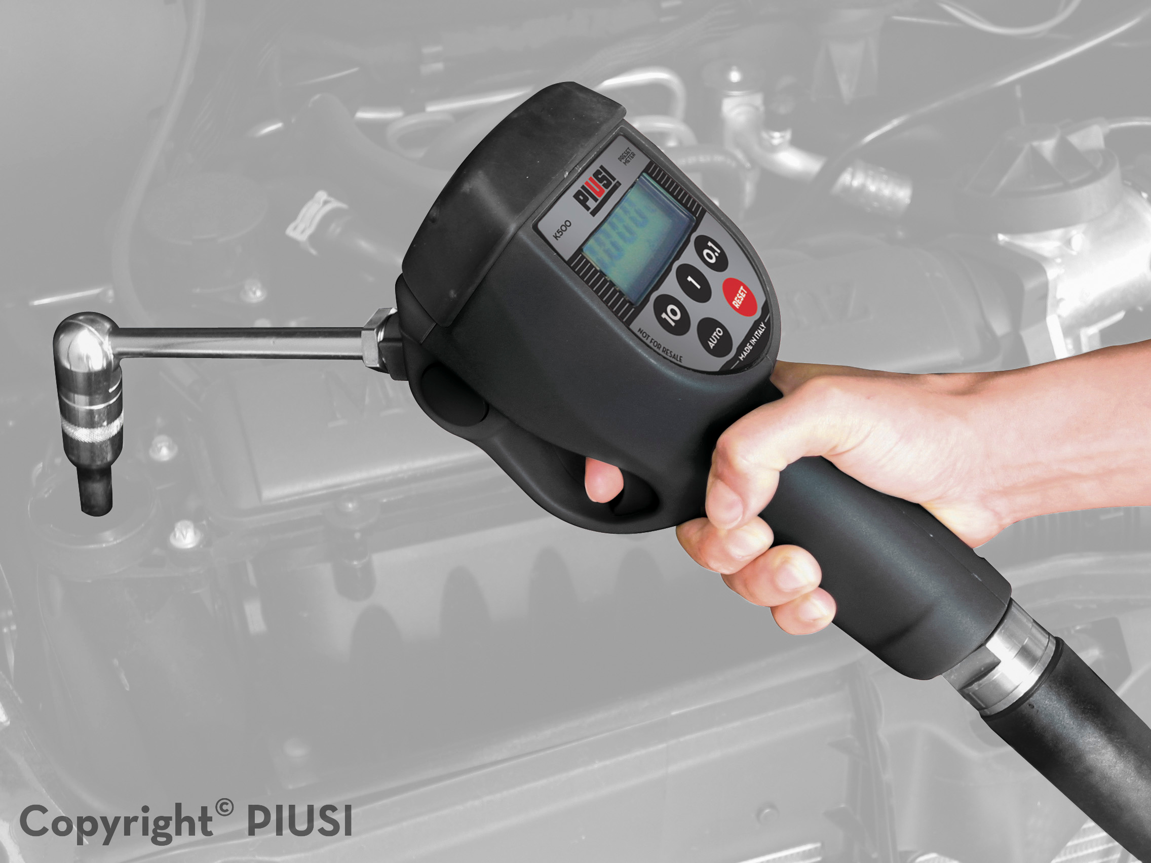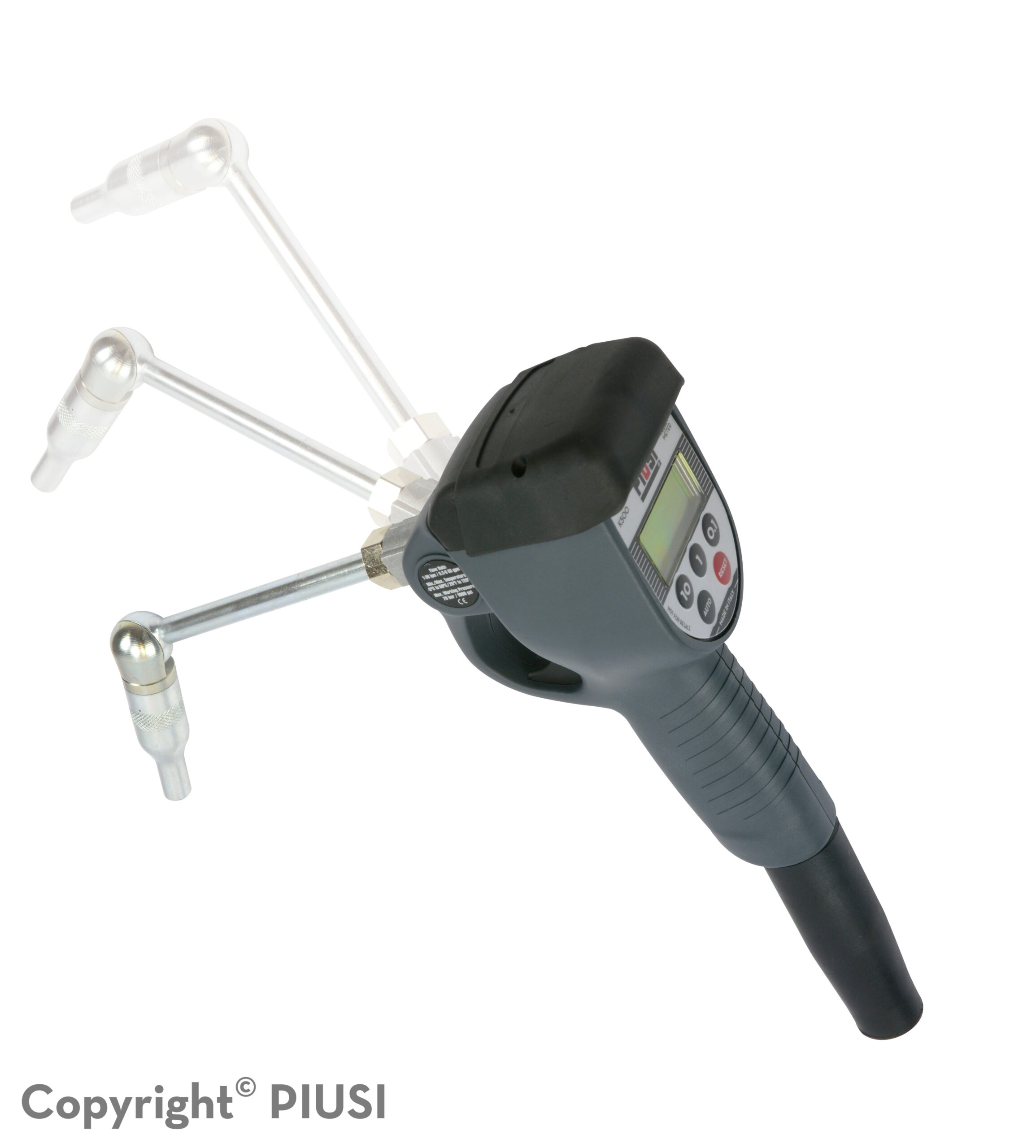 Výdajná pištoľ na olej s prietokom 1-30 lit./min. ako jediná z pištolí umožňuje prednastavenie vydaného množstva od 0.1 do 99.9 litrov. Po dosiahnutí prednastaveného množstva sa pištoľ automaticky vypne. Výlevka s otočnou hlavicou umožní nastavenie rôznych polôh čo výrazne uľahčí doplnenie olejov aj na ťažko dostupných miestach.